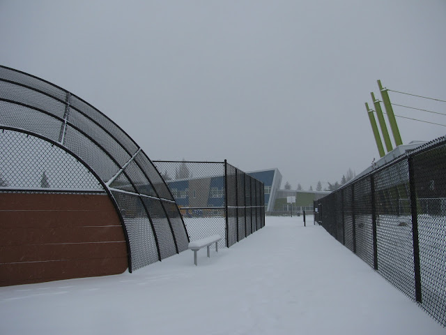 Great images of your white world, I like the contrast with the colorful play equipment. It looks like you still have power, I'm hearing that many up in the Seattle area don't.