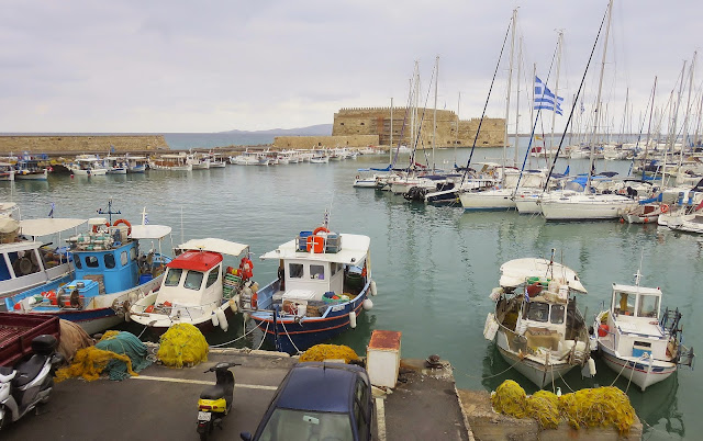 Next we drove to Heraklion City to see the harbor and the Venetian fortifications there. Rain squalls obstructed the view.