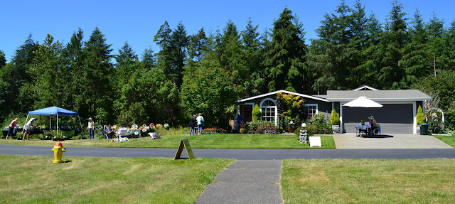 Tom's sister Jan lives in Gig Harbor, on Henderson Bay, and she just so happens to be the President of the Board of the Gig Harbor Tour. She was also the volunteer coordinator, so we kept running into her in the various gardens. We met up for lunch on her deck.