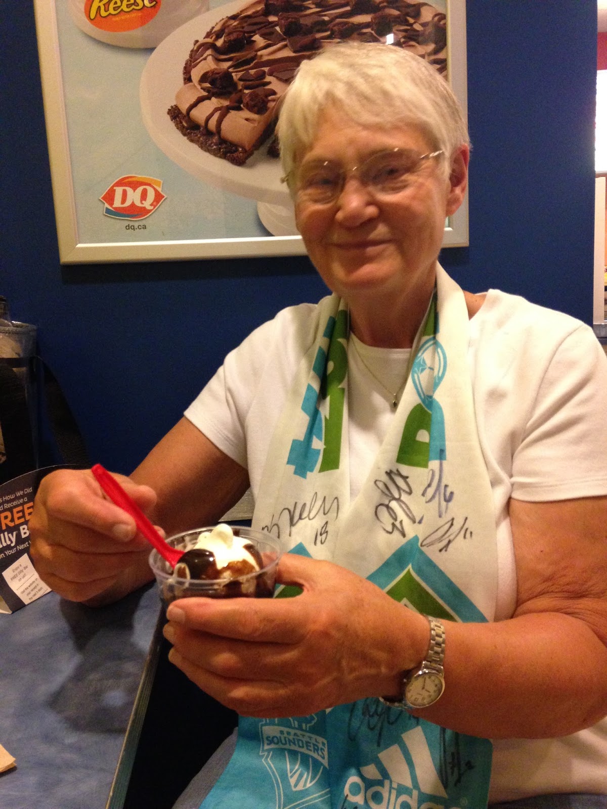 After the match, we joined the throngs walking back into the city. We stopped off at a Dairy Queen on the route for mini-hot fudge sundaes.