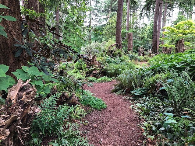 Most of the rhodies were finished blooming, but the greens glowed, and the under story plants (ground level) were a real attraction for us.