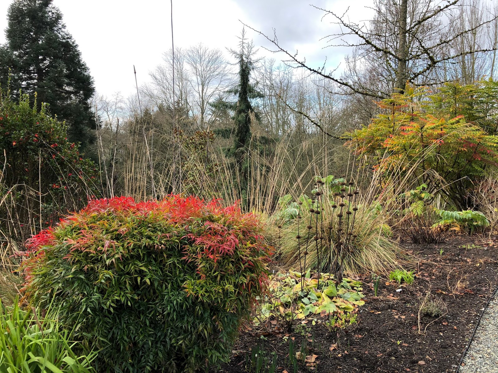 From previous posts you know that I live in an area with many wonderful public gardens and great places to go for walks. On Sunday morning, with the sun finally shining, I chose the Bellevue Botanical Garden, knowing we could stroll slowly, get in a couple of miles on firm surfaces, and find the witch hazel and hellebore in bloom.