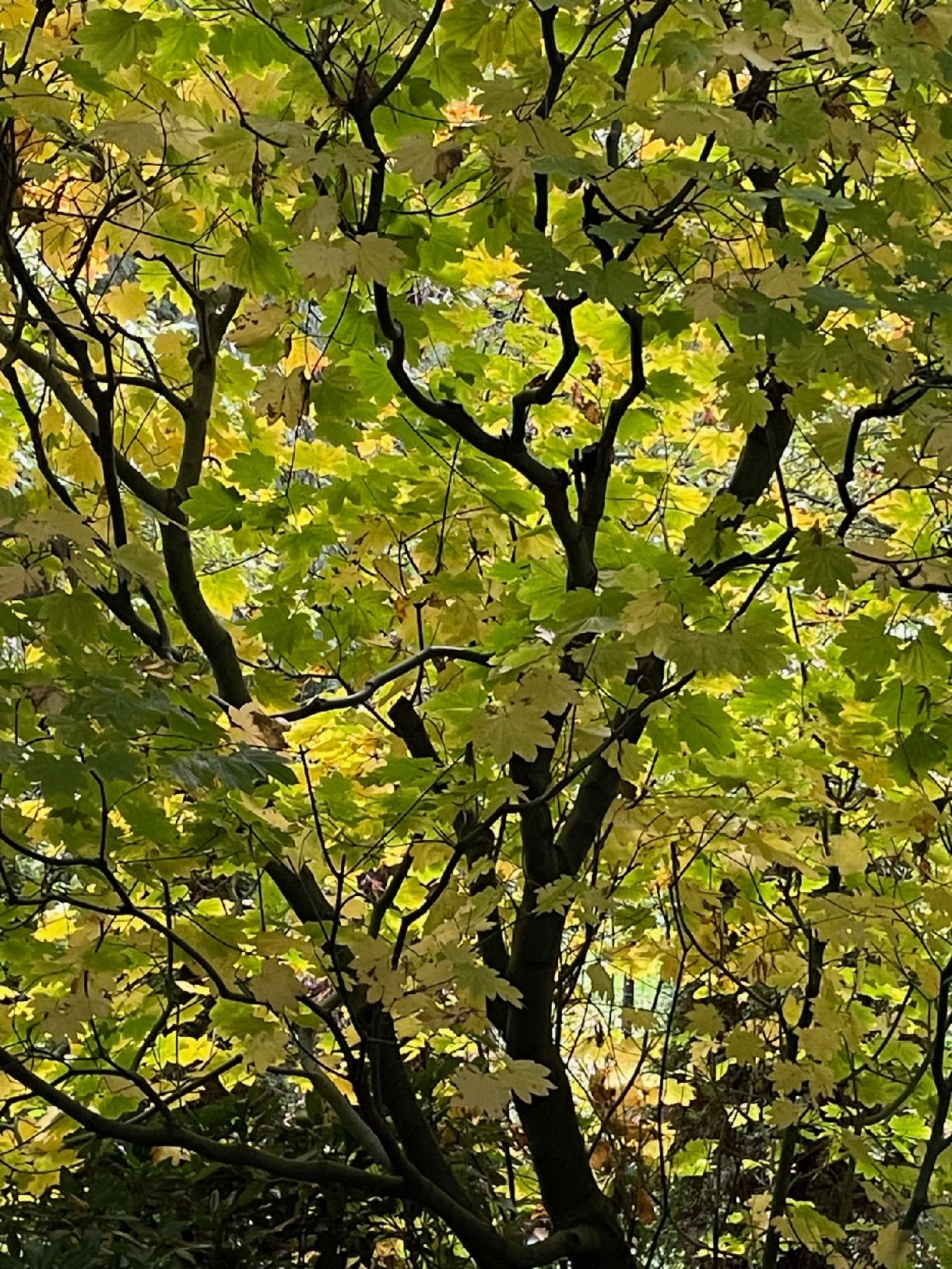 Intensity was happening outside here in our garden too. In just a few days, since my last post, the colors of the leaves on my trees has intensified.
