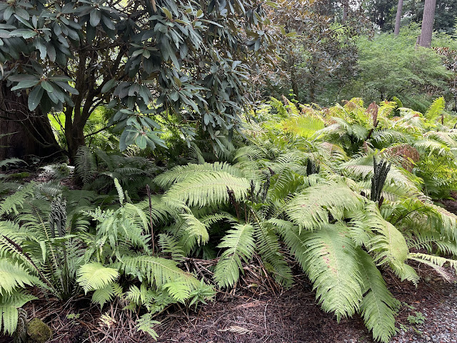 On Wednesday Tom and I both worked hard in the garden. On Thursday we needed a change of venue. We needed to stay active, but only moderately so. We decided to visit the Rhodendron Species Foundation not too far away in Federal Way. We would get a walk in the woods, a "cultivated forest", and visit the Bonsai Collection too.